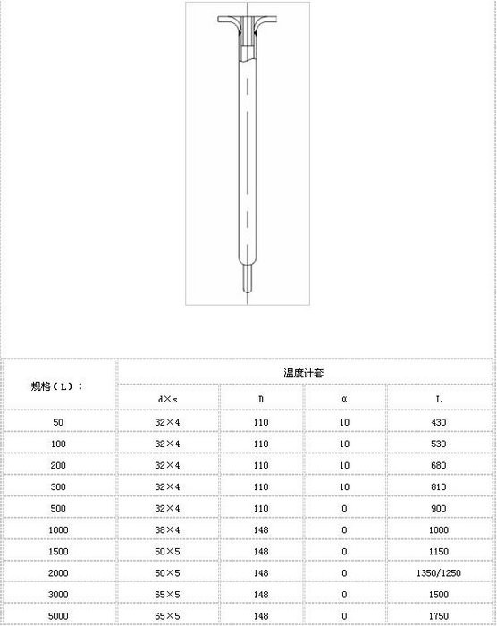 搪玻璃溫度計套管兼做擋板相信對于經常使用搪玻璃反應釜設備的您不陌生。溫度計套管顧名思義是反應釜設備用來測量內部物料即時反應溫度的裝置。一般配置在錨式或框式搪玻璃攪拌器上面,也可以配置在槳式或葉輪式攪拌器上面,其公稱壓力為0.6MPa1.0MPa,介質溫度一般為-20~200℃。